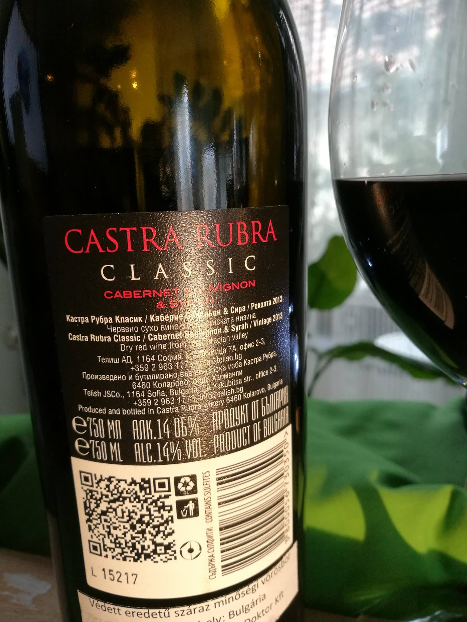 Castra Rubra Classic, egy Cabernet Sauvignon & Syrah házasítás 2013-ból.