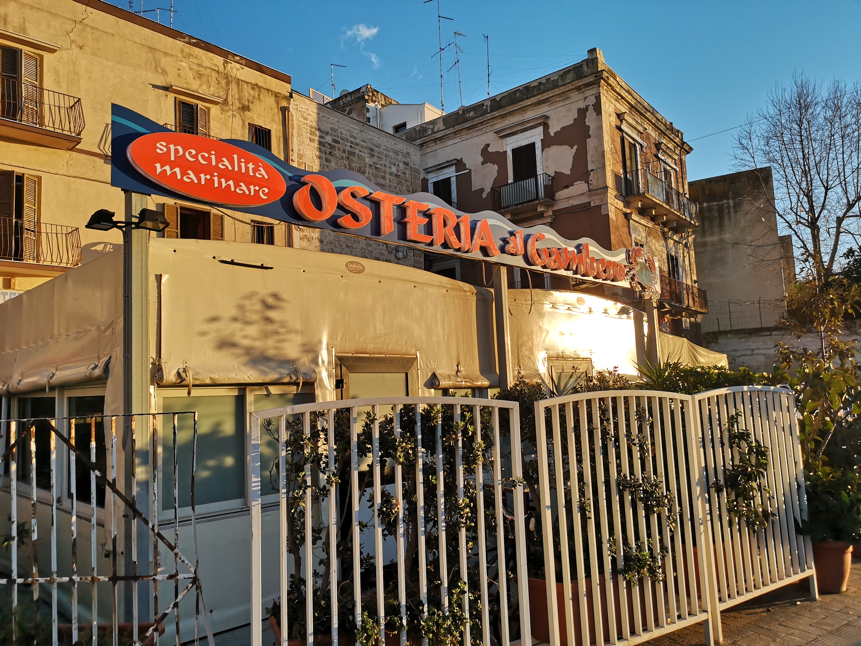 Hosteria Al Gambero, a tengernyi tengeri herkentyű falodája Bariban…