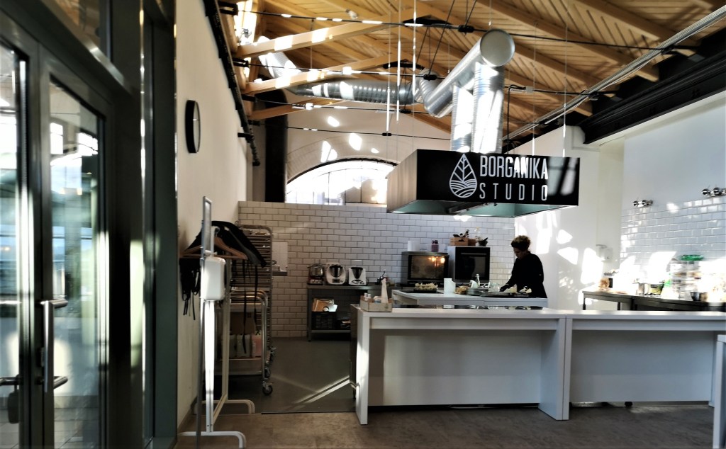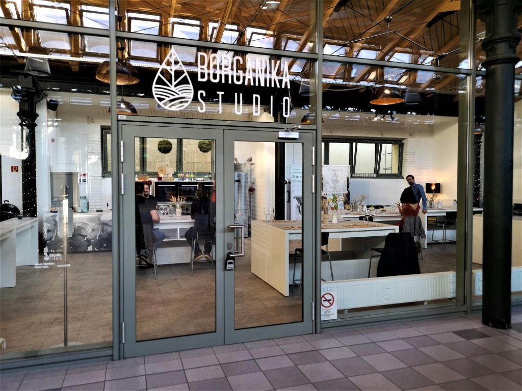 Borganika Studio. Jó már az első benyomás is. Az igaziból a Napból sütő meleg és a mesterséges hidegfehér fények kavalkádjában ragyog a szentély, a sok fekete székpárna, az a néhány fekete oszlop és a fehér kiegészítők természetes módon simulnak bele a hófehér falak ölelésébe, a szellősen széthúzott fehér pultok a rajtuk sorakozó és ritka jó élményt ígérő csillogó poharakkal, többek közt ezek is megadják a szemnek és léleknek is jóleső díszletét ennek a helynek.