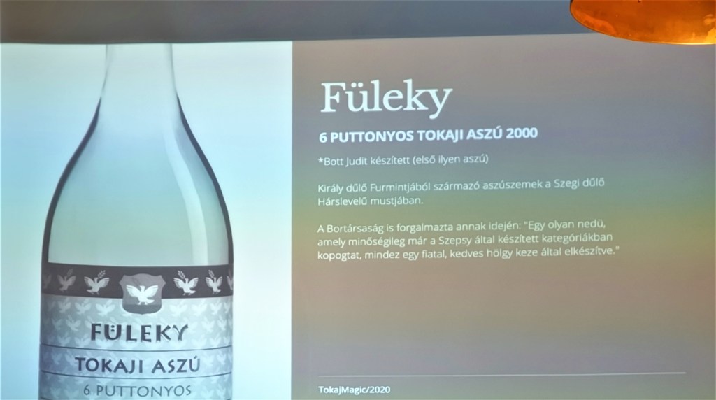 Az est főszereplői a maguk a még ma is élő és viruló ezredfordulós Tokaji Aszú borok voltak és bár azt a régi 2000. évszámot írták rá minden palackra, azért az fel sem merült senkiben, hogy lenne akár csak egy olyan is köztük amelyik elfáradt volna az idevezető hosszú és sokszor kanyargós életútja alatt, merthogy az ország több szegletéből, gyűjtőktől, borászoktól, és ki tudja még honnan, időt, energiát pénzt nem sajnálva, úgy kellett összeverbuválni ezt a párját ritkító borsort.