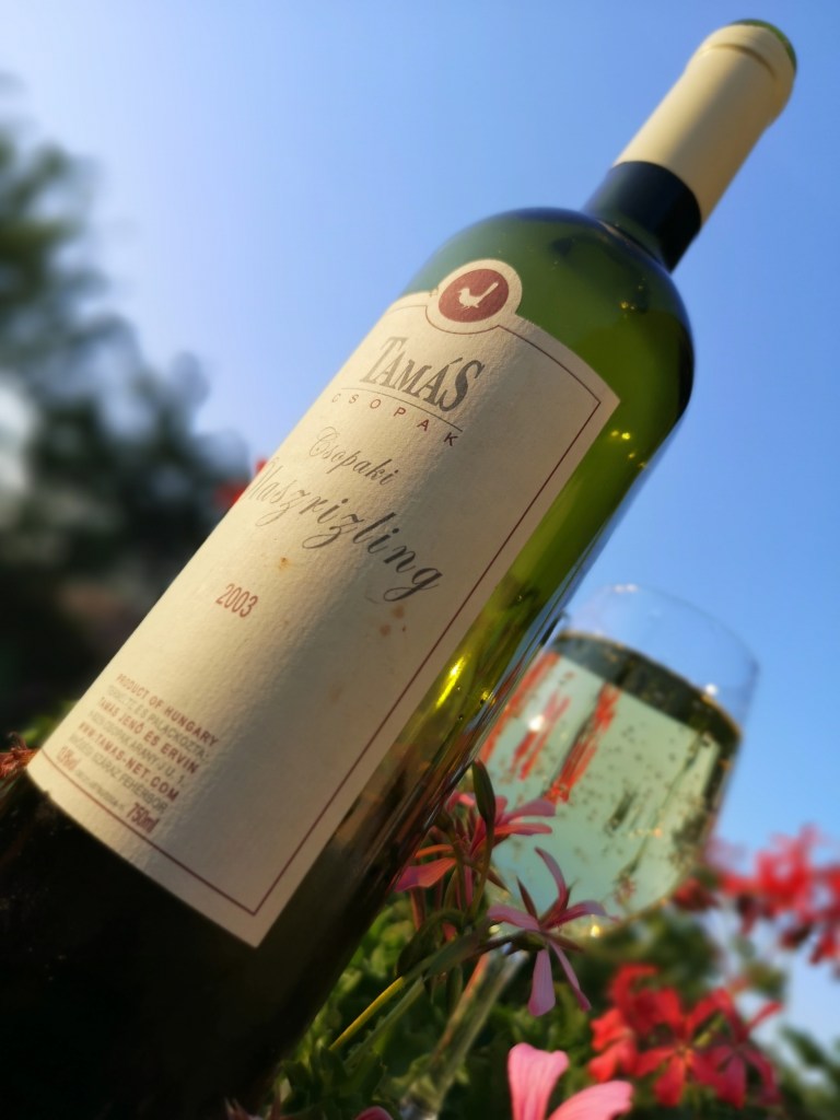 És akkor ott állt ez a tizenhét éves bor a meztelen valóságában a keresztút előtt, vajon egy pohárban megdicsőülve vagy csak mindenki által elfeledve, egy lefolyóban zárul majd le matuzsálemi hosszú élete. Az első korty megadta a választ. Tamás Jenő és Tamás Ervin bora, ez a Csopaki Olaszrizling, aki még 2003 őszén láthatta meg először a Balatont, még most is oly gyönyörű, hacsak nem gyönyörűbb mint ifjú korában volt. A pohárban megdicsőülés ezek után evidens…