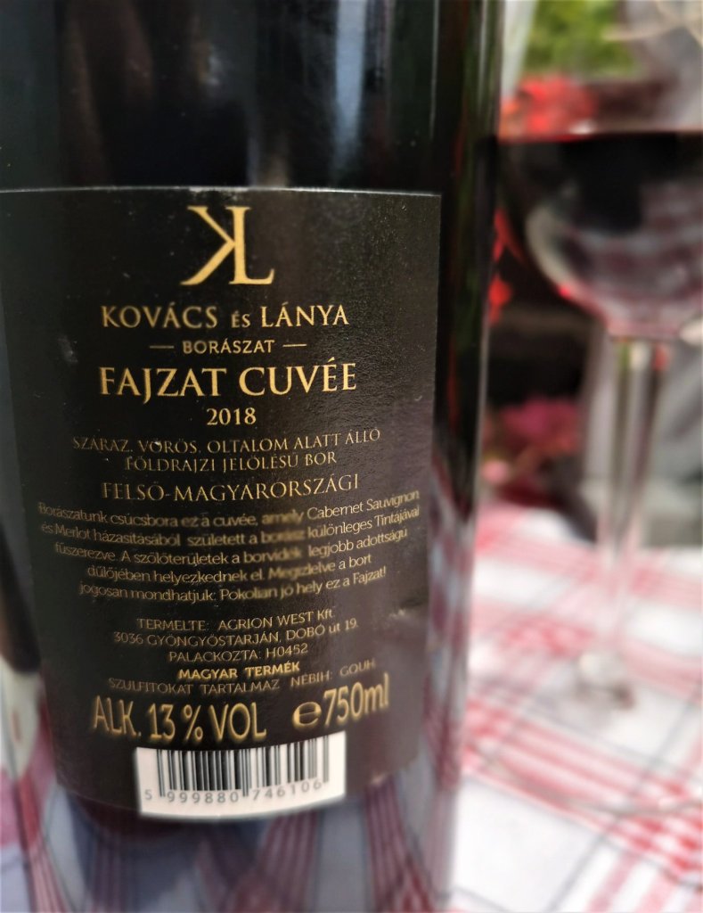 Kirendeltem névsorolvasásra az összes, a mediterrán kapcsolatot felvállalni hajlandó palackot a pincéből! Kisomfordált a végén egy, még újoncnak számító bor is a Kovács és Lánya pincétől, aki a Fajzat nevet viseli és 2018-ban látta meg a pincelámpát. A Kovács azt írta róla, ez a bor a pince birtokbora, amely Cabernet Sauvignon, Merlot és Tempranillo házasságából született.