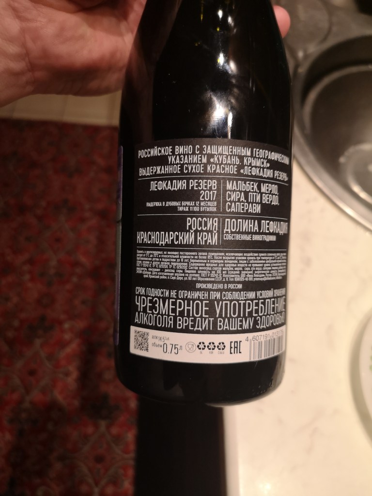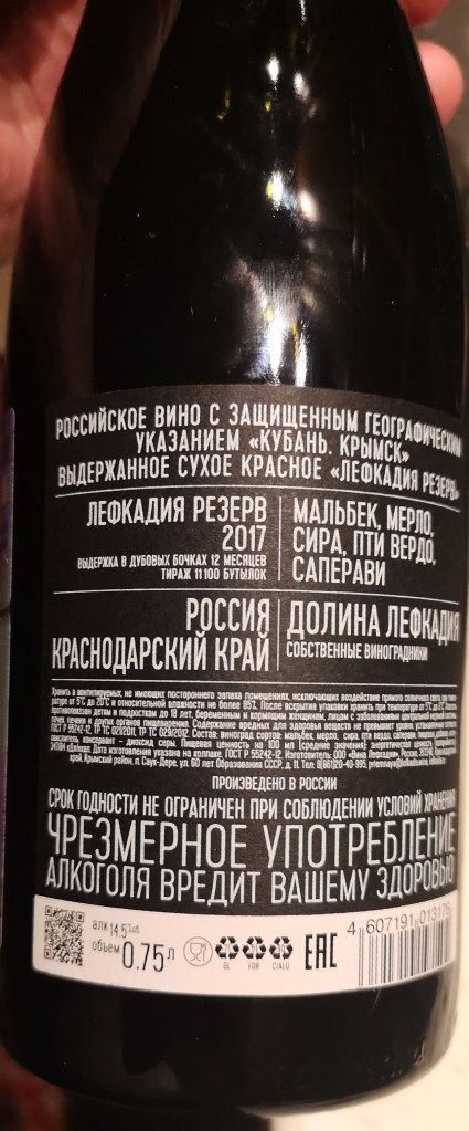 Hát persze, hogy egy igazi kékvérű orosz bort rejt ez a palack, és őfelsége csak innen a szomszédból, a Fekete tenger túlsó oldaláról, Krasznodarszk nyugati lankáiról utazott először Szentpétervárra, majd aztán ide hozzám. Testes, sűrű, komoly házasítás, engem meglepett azonnal, és már az első korty el is söpörte a jellemző bizalmatlanságomat, de hát mivel ez az első orosz bor amit megismerhettem, meg hát kicsit tartok is minden ismeretlentől, addig amíg az az, így ezen túl is tettem magam.