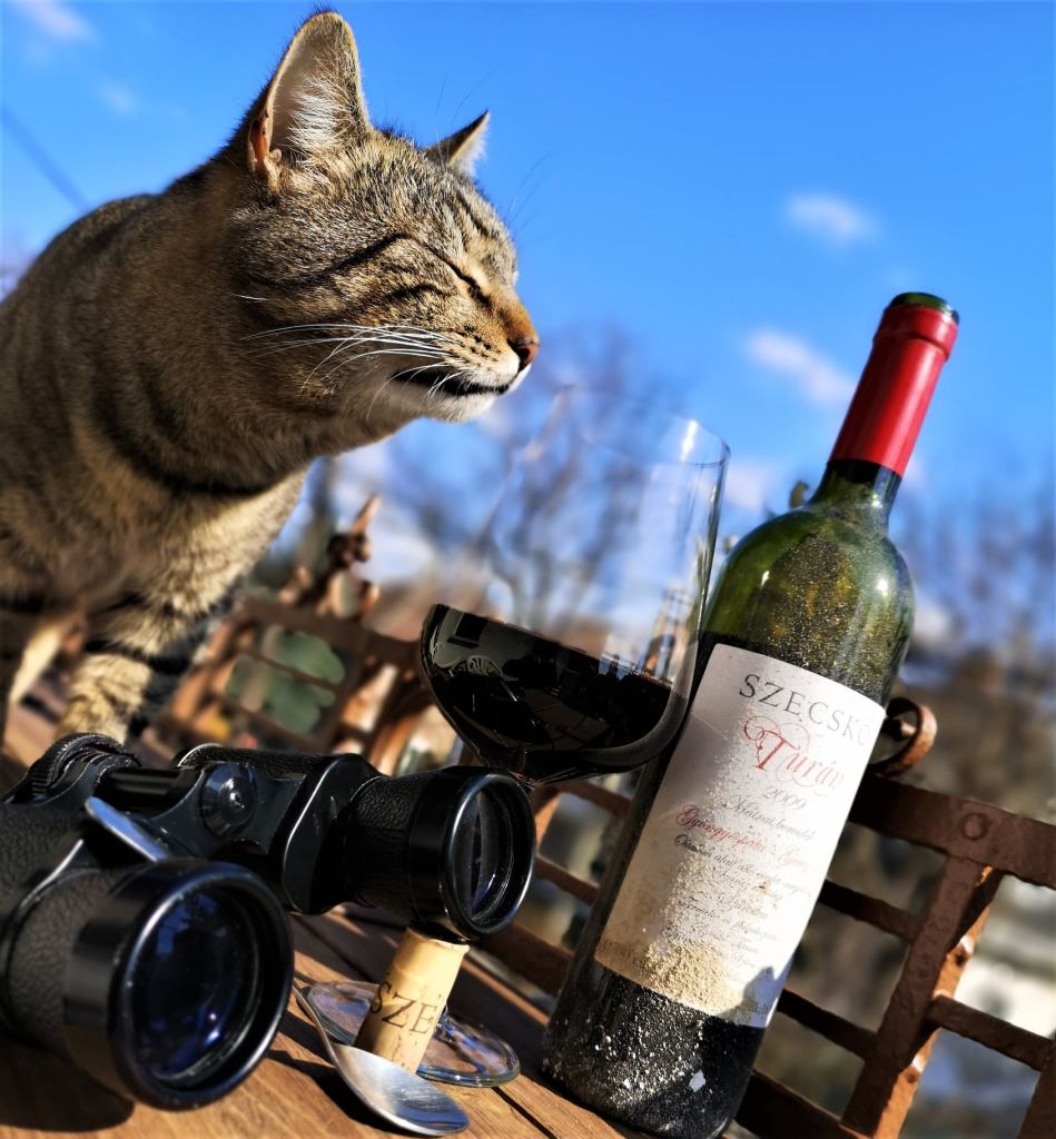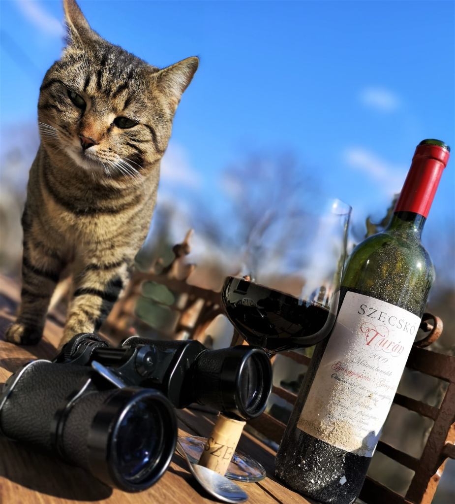Mindenesetre Pipőke, egy jóízlésű, domináns férfimacska létére, ő is erős érdeklődést mutatott e bor iránt már attól a perctől kezdve, hogy kiváló macskaszimattal messziről megérezte, hogy ma ez a Turán a napos teraszon, ez a nap fénypontja legalábbis számomra. Így minden akadályt legyőzve ripsz-ropsz ő is a palack mellett termett és mint látható, igazi borszakértő módjára, azt ahogy kell is, csukott szemmel jól megillatozta, és hát ez valószínűleg a későbbi fogyasztás céljából történt ily szabályosan. Az meg gondolom ebből kifolyólag mindenki számára nyilvánvaló, hogy bár lekoppintva az ismert Whiskas szlogent, csak annyit írhatok így epilógusként, hogy szerintem „ A macskák Turánt innának”…