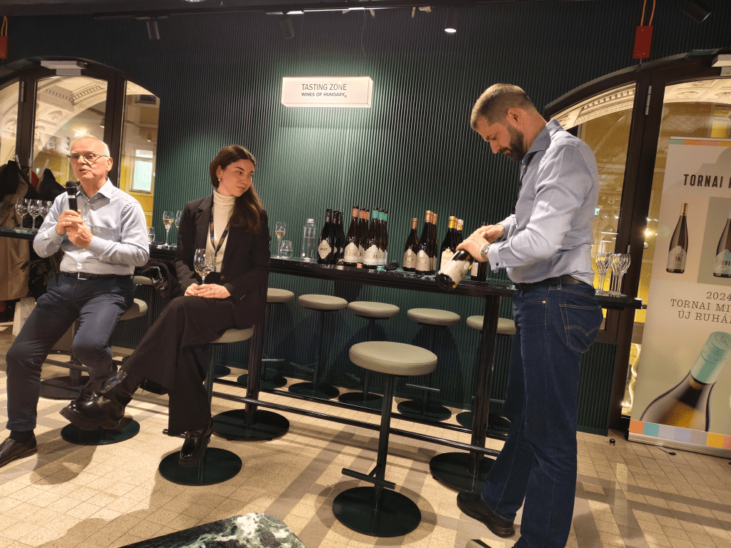Hát ismét ott ültem székemhez szegezve a Time Out Marketben, mert bizony olyan történés volt azon az estén, ami még nem volt és talán nem is lesz belátható időn belül. A kis túlzás nélkül is így vezetném fel, a világhírű Tornai Pincészet és annak is a feje Tornai Tamás Úr volt itt az esti vendég, balján Júliával, egy bájos családtaggal, jobbján meg a boraikkal akik így együtt, kalákában varázsoltak el ezen az estén engem és a többi nagyérdeműt is. Csak megsúgnám, a borászat része a Big Five-nek, így afrikaiasan megfogalmazva. Megkönnyíti mindenkinek elképzelni a Tornai Pincészetet, ha tudjuk a választ kettő rövid kérdésre, miszerint hány hektáron gazdálkodik a borászat, na hányon? A válasz az, minden hektáron! Na és melyik szőlőfajtákat termesztik ezen a hatalmas területen? Na melyikeket? A válasz az, hogy mindet! És ez egy icipici túlzással élve, szinte igaz is.